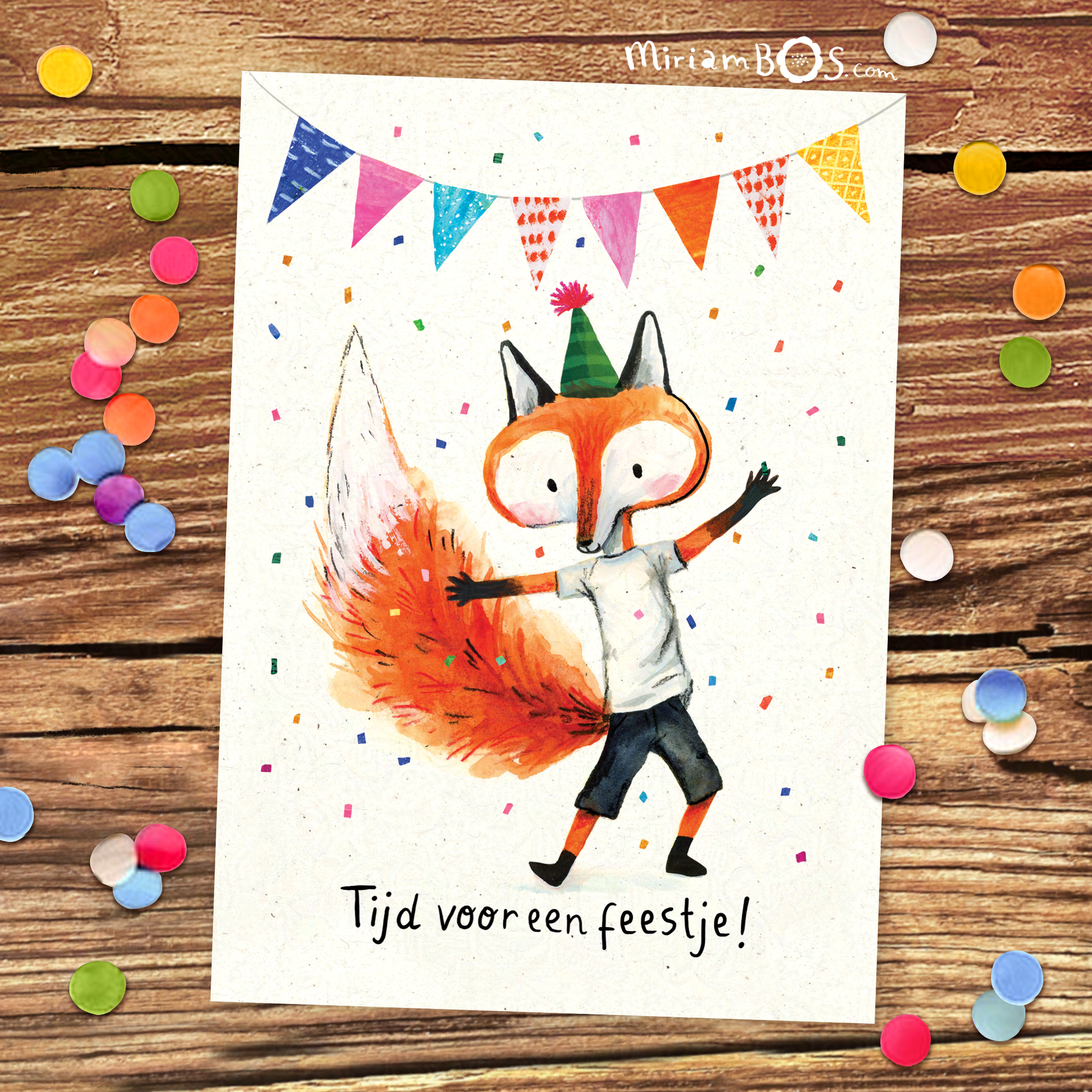 En op de achterkant kan je alle feest-info kwijt.